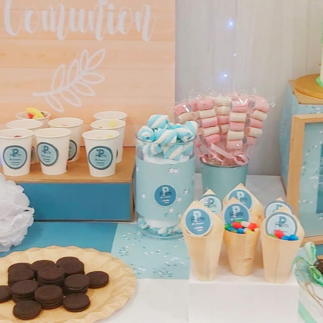 ✅ No pongas todo de golpe: Si el candy bar va a estar muchas horas, reparte en dos veces para que a mitad del evento no se vea vacía.