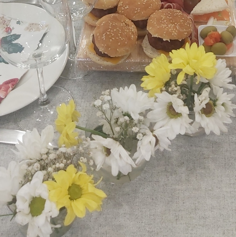 La decoración de la mesa también reflejó la personalidad de Anita: una mujer sencilla, pero con una elegancia natural que irradiaba luz en su entorno. Flores naturales, delicadas y hermosas, adornaban la mesa con un toque de frescura y vitalidad. Los colores suaves y naturales destacaban la belleza de las flores y complementaban la atmósfera cálida y acogedora de la celebración.