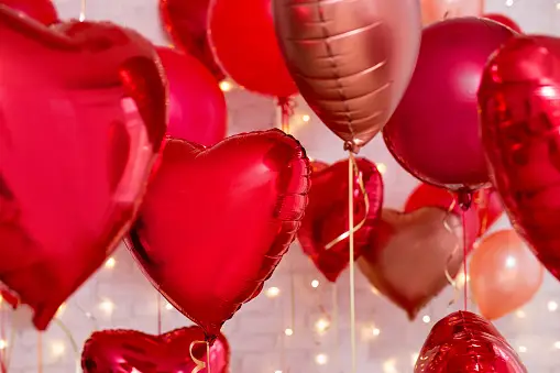 7. Globos Personalizados: Llena tu espacio con globos rojos y blancos. Puedes personalizarlos con mensajes de amor o simplemente dejarlos flotar para darle un toque festivo y alegre.