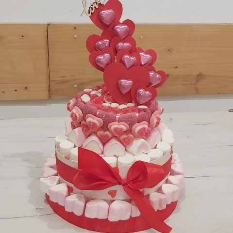 🍬 Esta tiene 3 pisos de dulzura y una cascada de corazones que la hace irresistible.