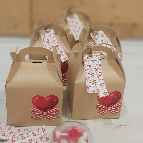 🎁 Incluye chocolatinas, gominolas, piruletas, y dos pulseras del árbol de la vida, todo cuidadosamente decorado y presentado en una cajita craft con papel de corazones.