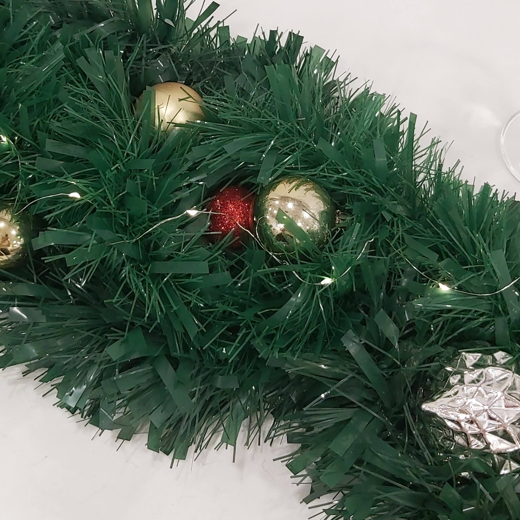 Los atrezzo cuidadosamente seleccionados incluyen espumillón, cuerda de rafia, bolas de Navidad y velas que crean una atmósfera festiva.