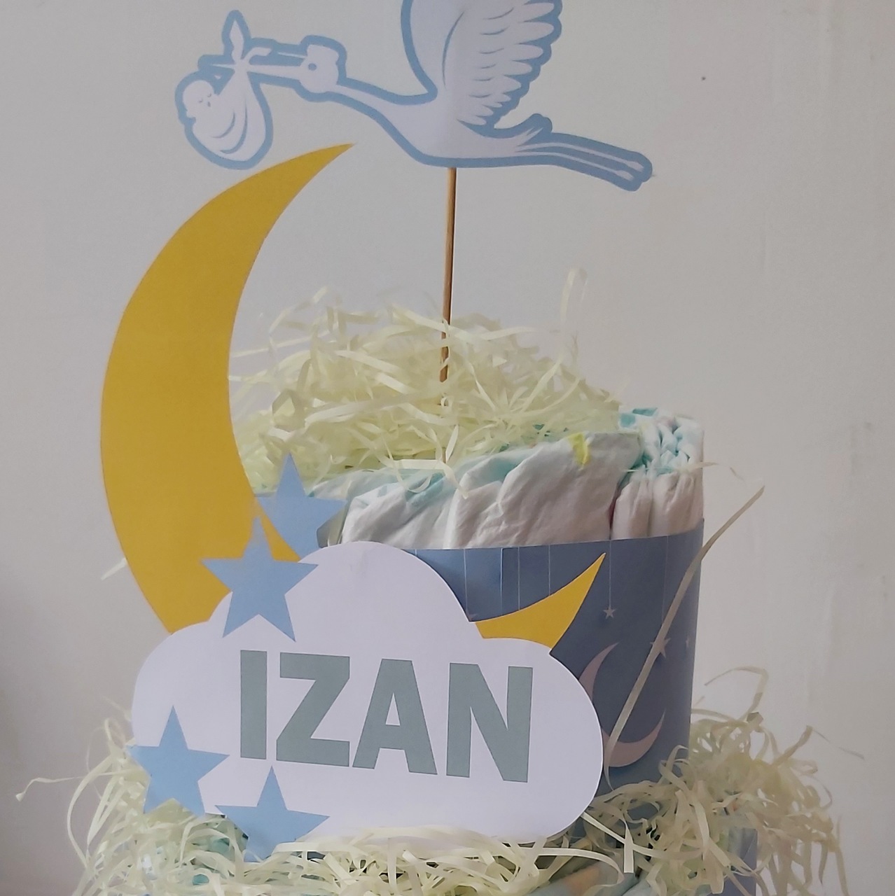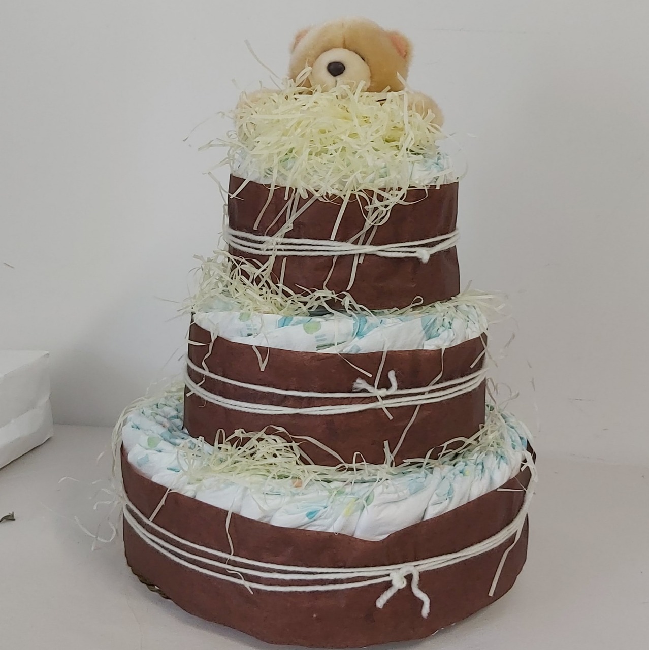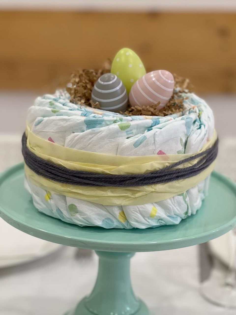 Haz guirnaldas utilizando pañales enrollados y atados con cintas de colores. Cuélgalas en las paredes o alrededor de la mesa principal para una decoración creativa y práctica.