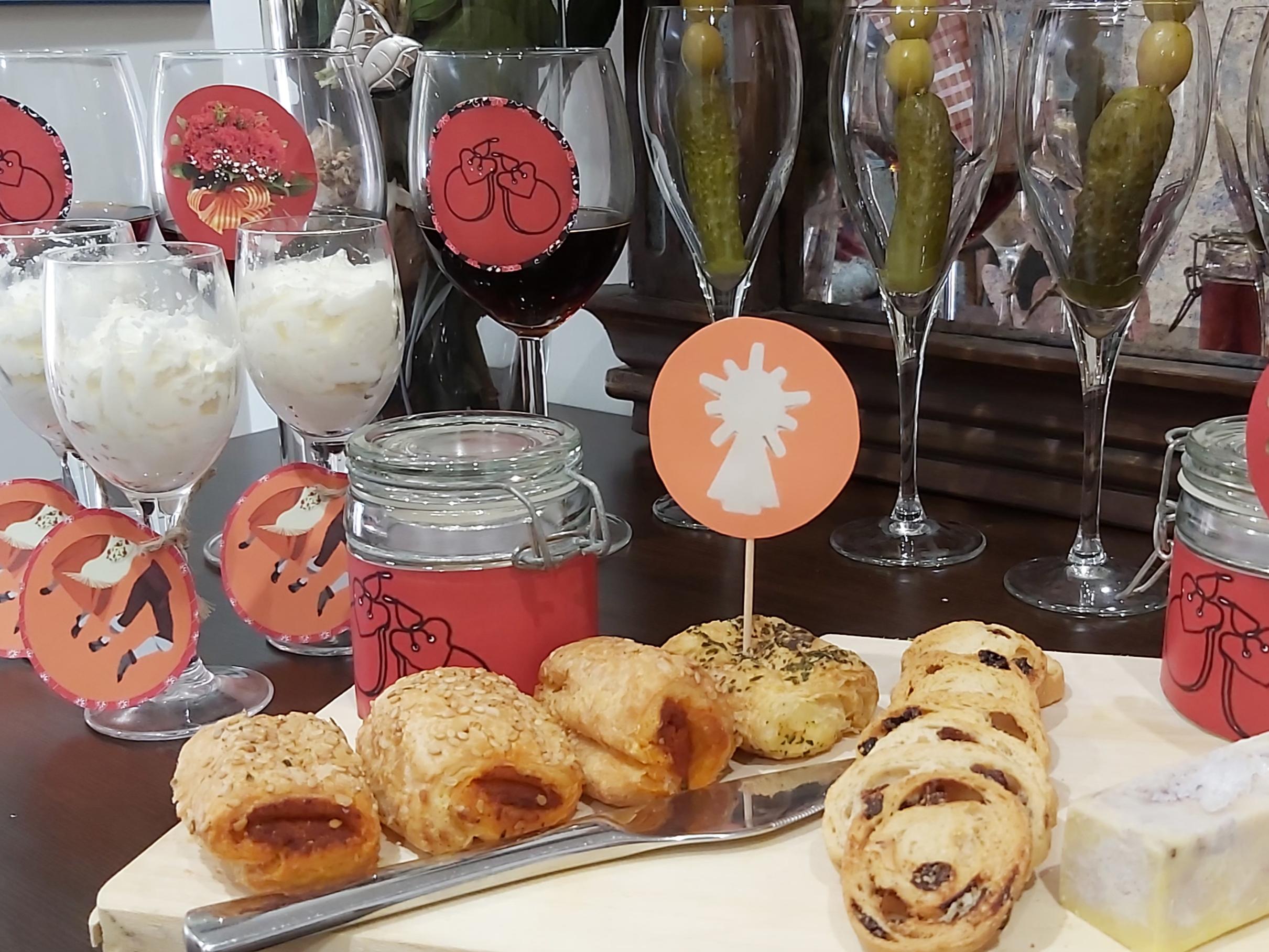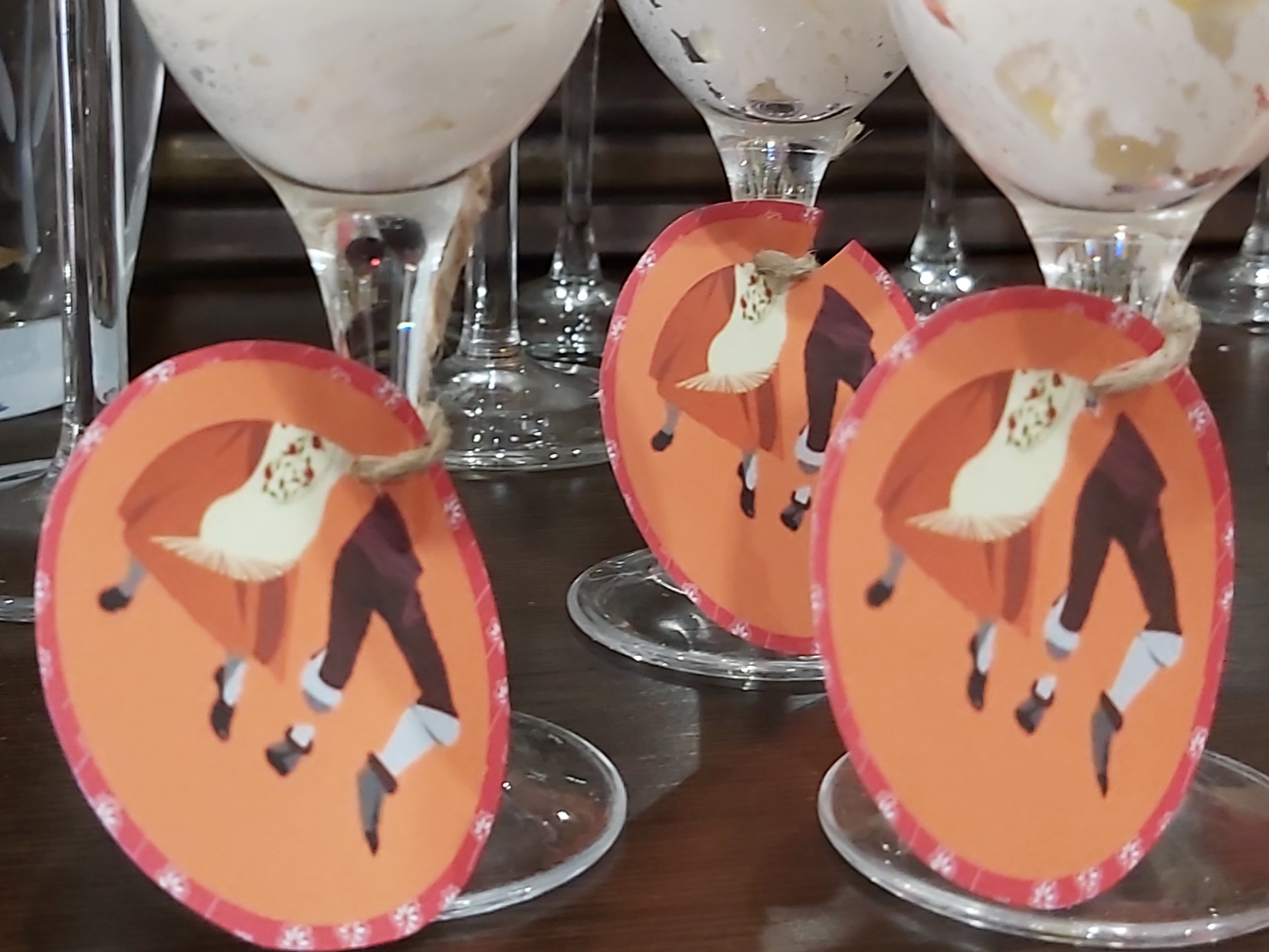 Los toopers con una cuerda atados al pie de la copa quedan chulos, o con una cuerda alrededor de un bote, o pinchados por los aperitivos… en mi caso hasta para pinchar las uvas