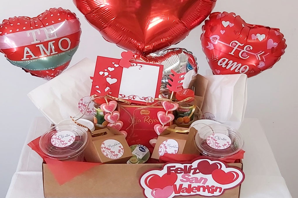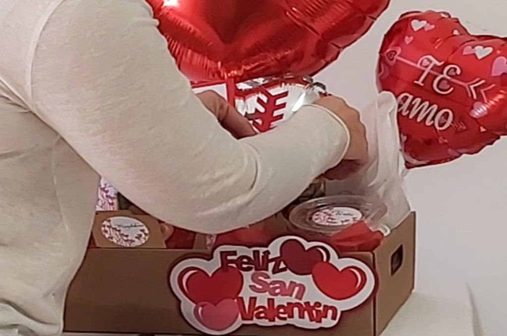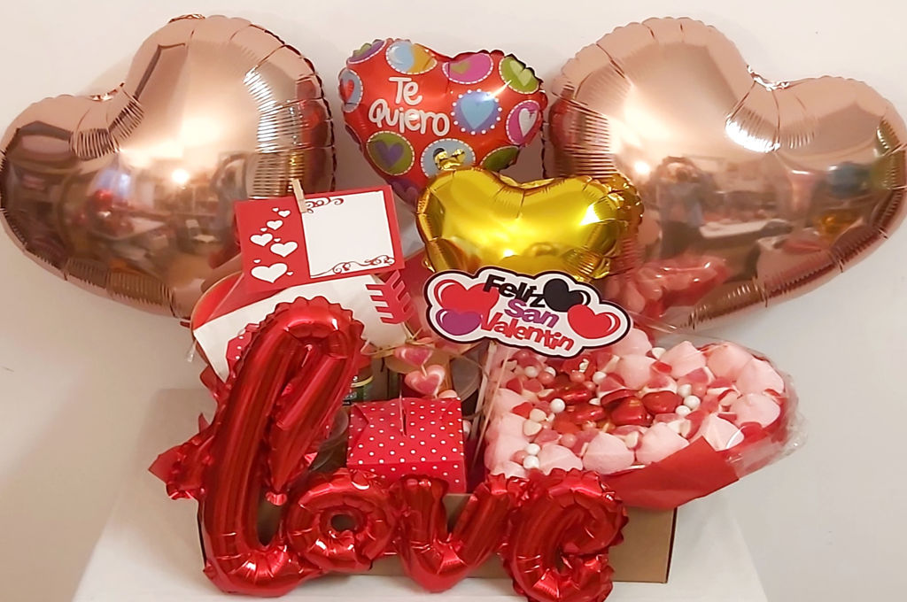 Nada más recibir la caja o encontrarla al despertar, ya empiezas a disfrutar de la decoración tan bonita, los globos, el colorido el tooper Feliz san Valentín la postal personalizada con tu mensaje… Aunque solo fuera eso ya es emocionante.
