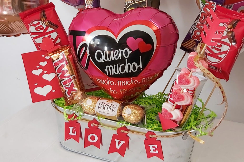 Que sería de un San Valentín sin chocolates, para celebrarlo tienes esta jardinera llena de una selección de chocolates variados que ira decorada con tooper Feliz san Valentín y globos para dar mucho colorido en la postal pondremos el mensaje que tú nos digas, por supuesto la culpable de vuestro flechazo…la flecha dulce del amor para que os endulce aún más vuestro amor en San Valentín. Al recibirla con su papel celofán será sin duda una dulce sorpresa en San Valentín