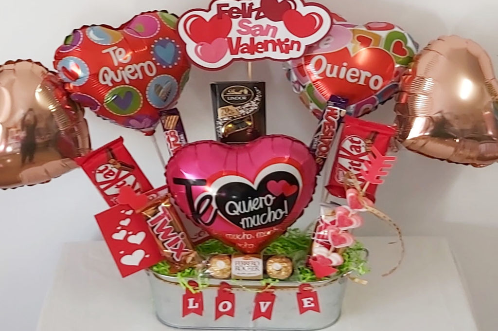 Que sería de un San Valentín sin chocolates, para celebrarlo tienes esta jardinera llena de una selección  de chocolates variados que ira decorada con tooper Feliz san Valentín y globos para dar mucho colorido en la postal pondremos el mensaje  que tú nos digas, por supuesto la culpable de vuestro flechazo…la flecha dulce del amor para que os endulce aún más vuestro amor en San Valentín.  Al recibirla con su papel celofán será sin duda una dulce sorpresa en San Valentín