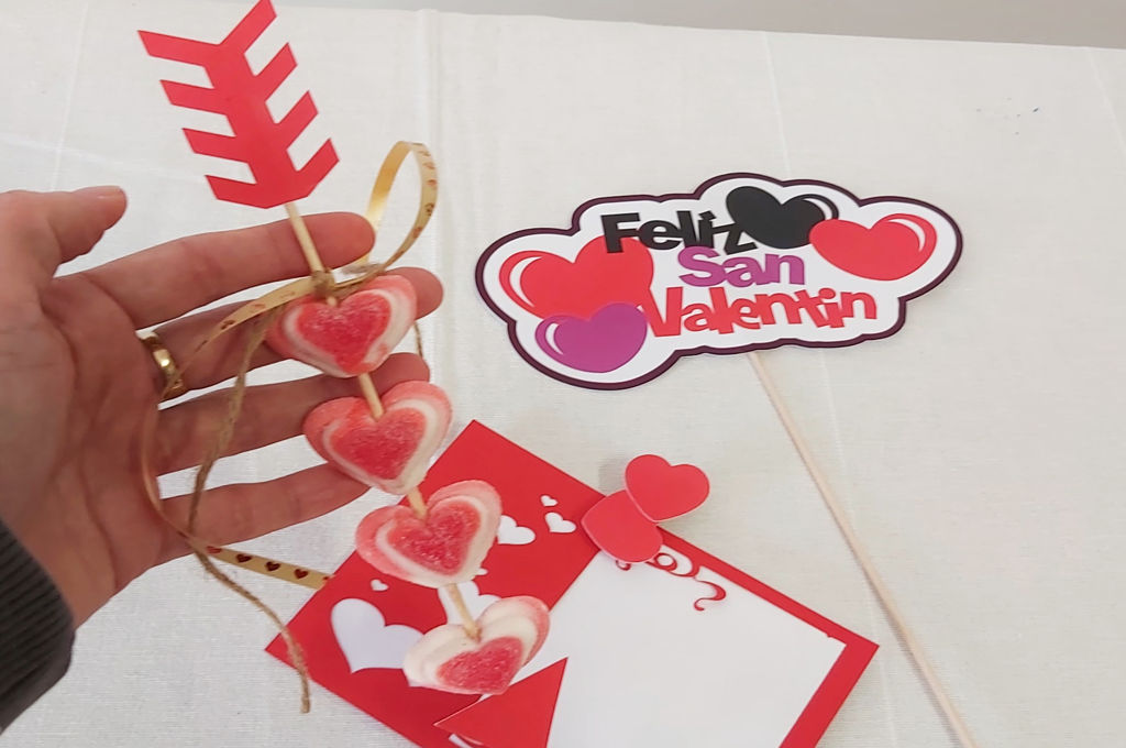 Seguirá con la emoción y se encontrará con un regalo que tú elegirás de los que tenemos, además de chocolates el ingrediente de un san Valentín romántico sin duda y ¿Qué sería de un San Valentín sin un brindis? pues también tienes el cava y sus dos copas para que el brindis sea inmediato y la culpable de vuestro flechazo…la flecha dulce del amor para que os endulce aún más vuestro amor en San Valentín