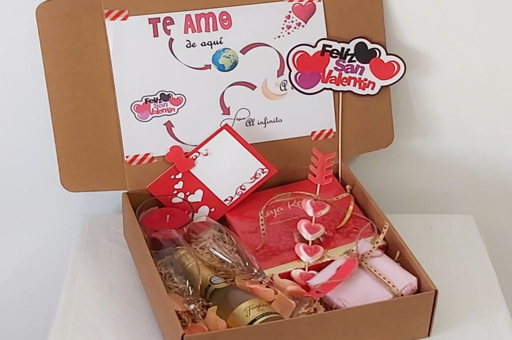 Al abrir la caja lo primero que leerá será la frase » Te quiero de aquí a la luna, de la luna al infinito, Feliz San Valentín»